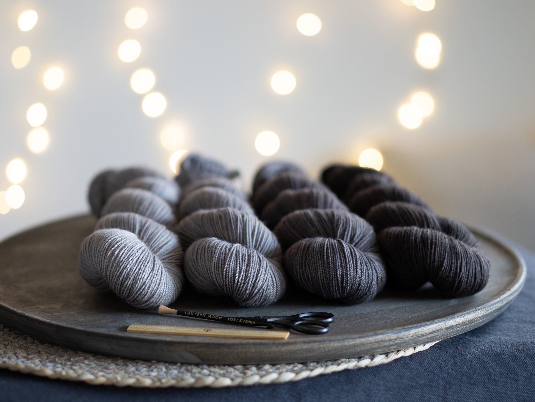 Da unsere Farben nicht vorgemischt zur Verfügung stehen und jede Charge von uns von Hand aus Grundfarben zubereitet wird, sind Abweichungen zwischen den Chargen möglich. Die Garne werden von Hand gefärbt, zu ihren besonderen Merkmalen gehört, dass nicht alle Stränge exakt gleich und gleichmäßig sind. Zwei Stränge abwechselnd zu stricken hilft, um Pooling und Übergängen vorzubeugen.