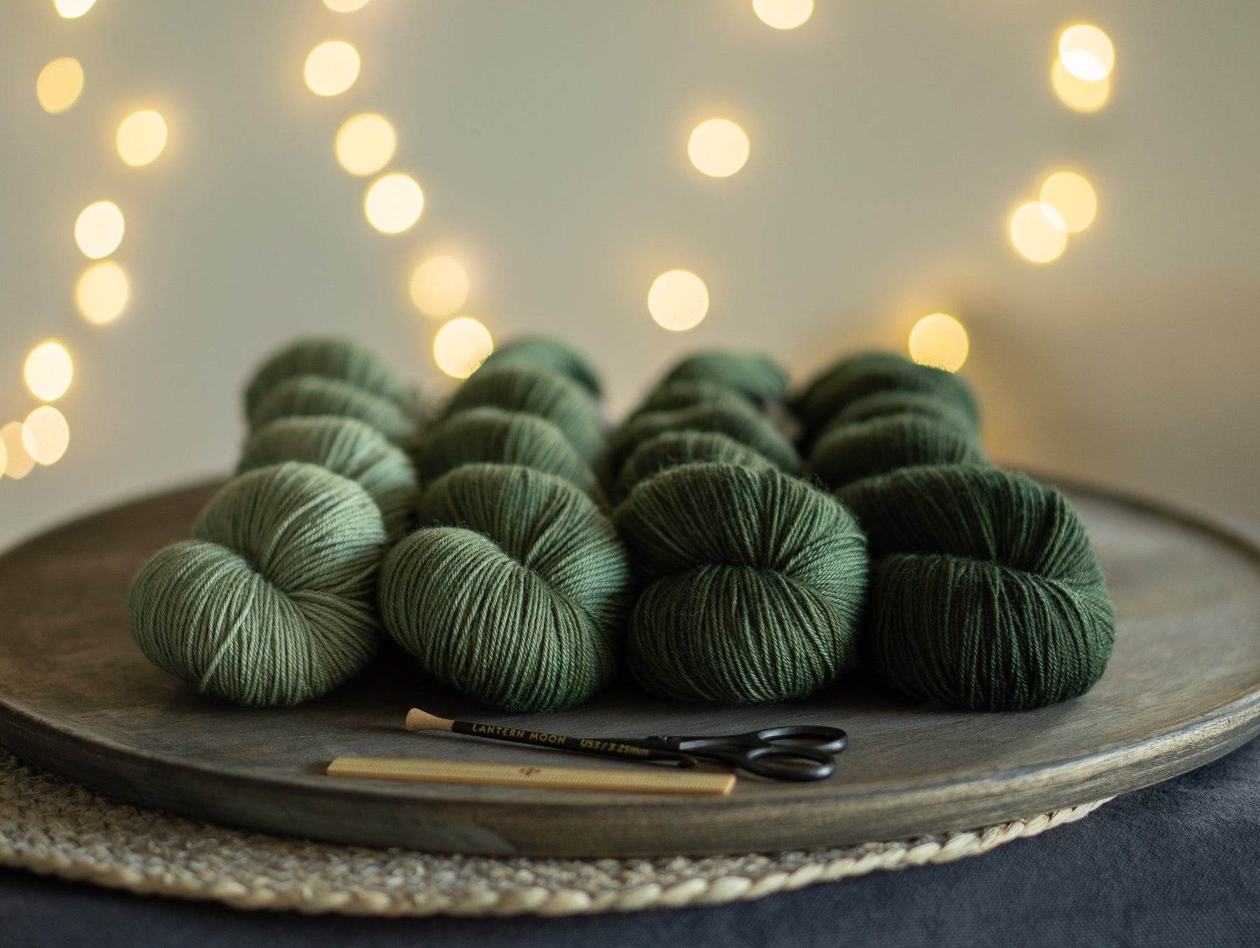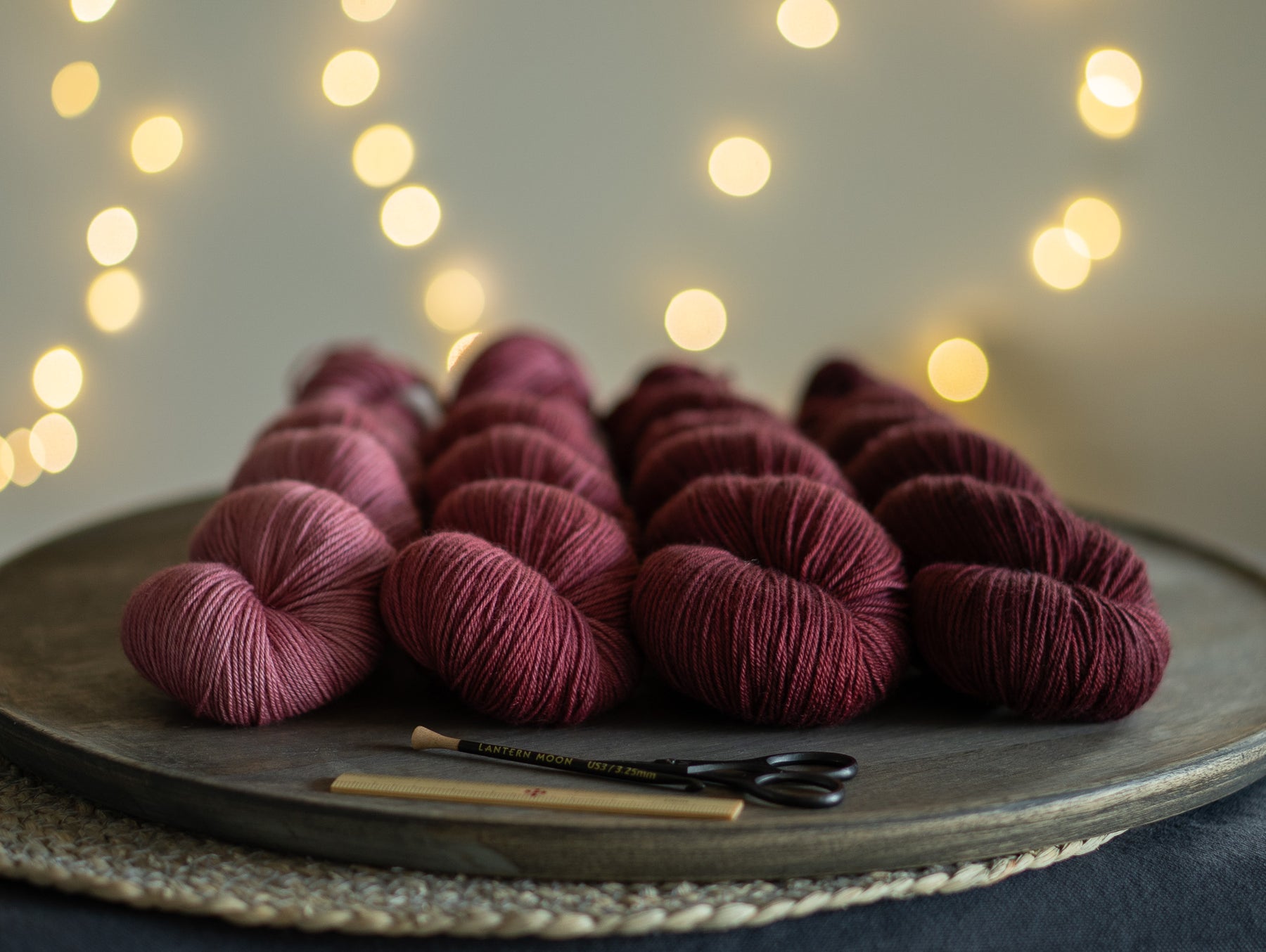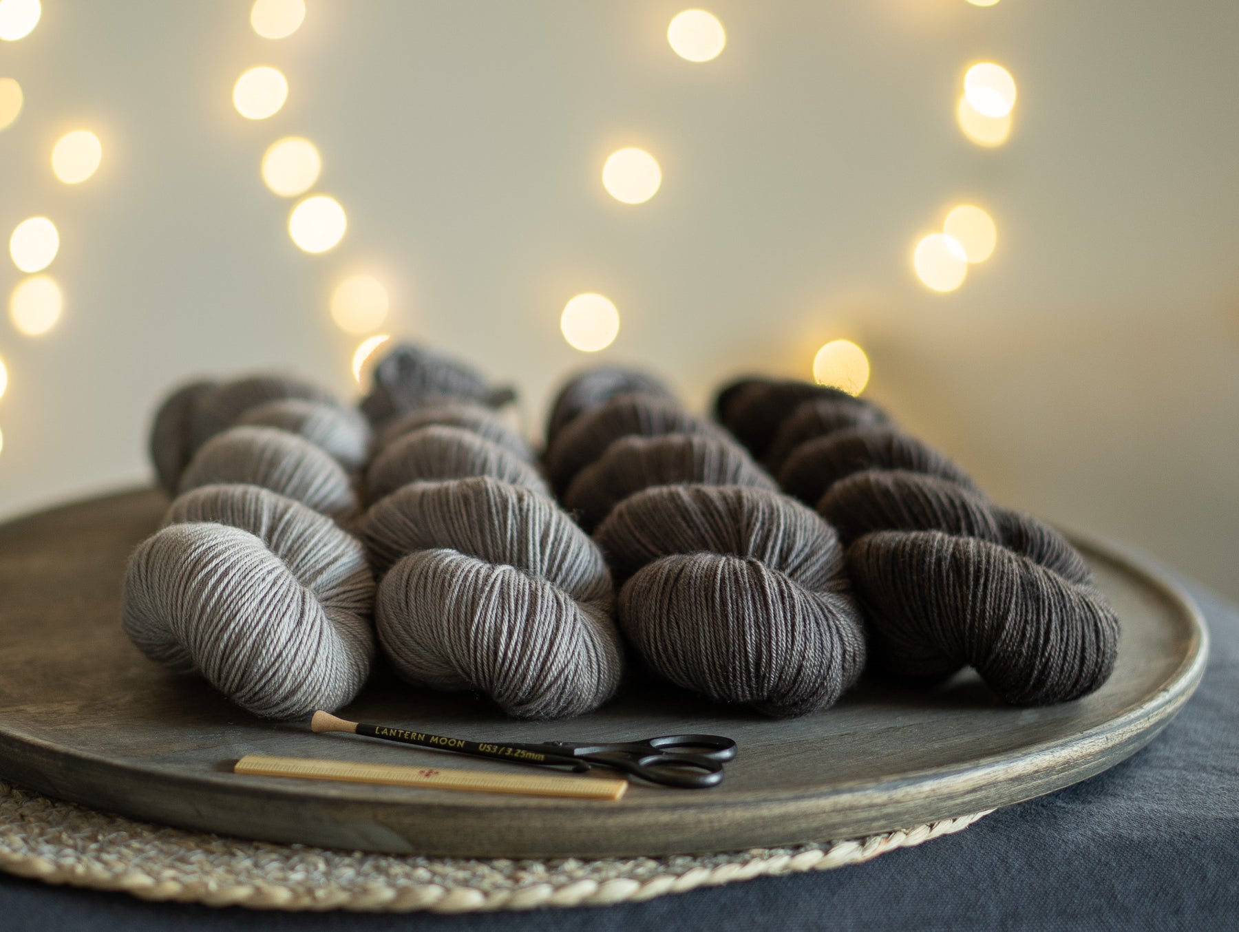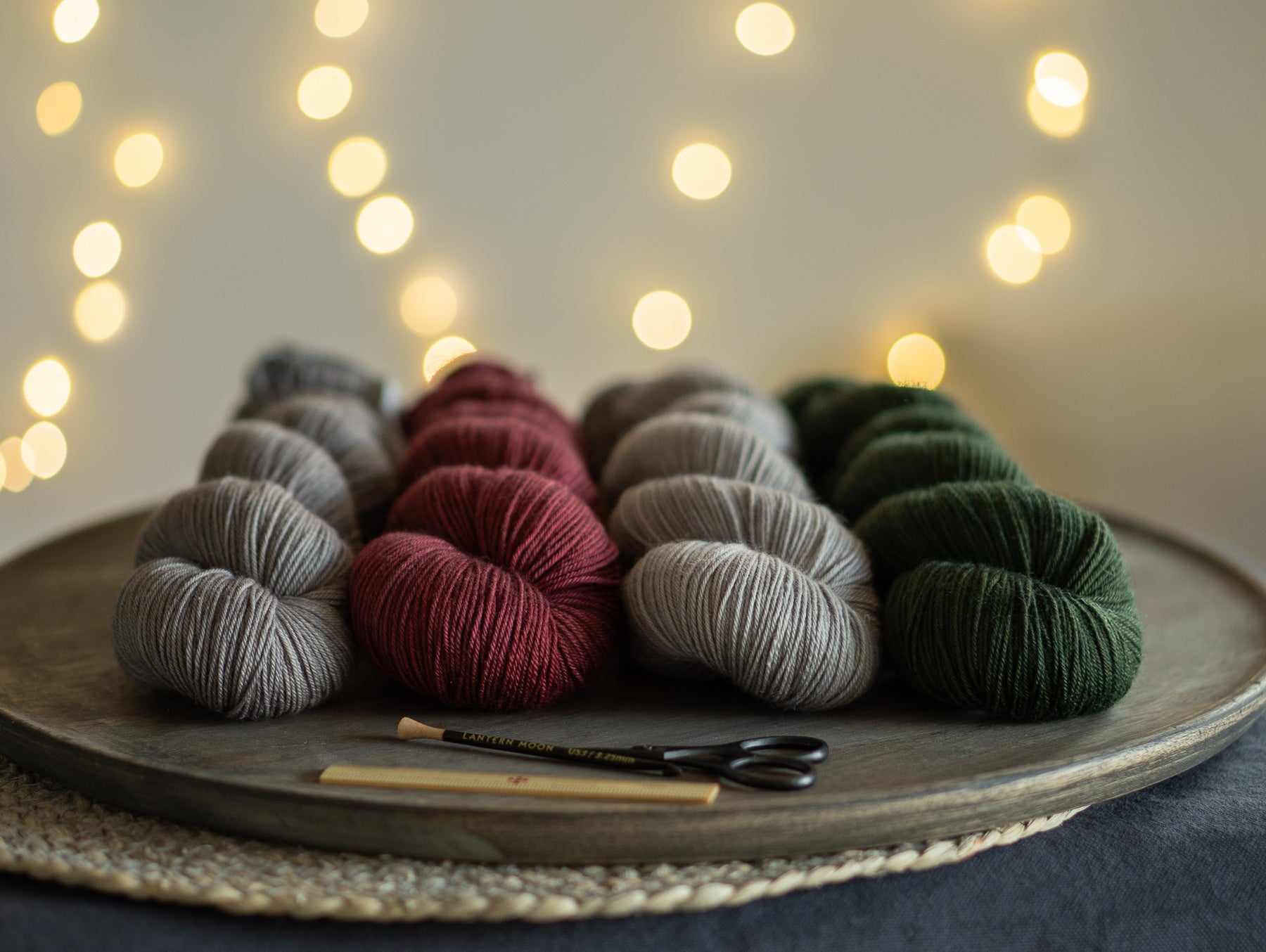 Anstatt Adventskalender in drei verschiedenen Ausführungen haben wir uns dieses Jahr für eine überschaubare Witerbox zum Abschied entschieden. Inspiriert durch die angesagten Herbst/Winter Farben haben wir 12 wunderschöne Farben kreiert, die es in 3 Fades und einem Mix gibt. Begleitet werden die 4 Stränge Garn von wirklich nützlichen Helferlein, die sich immer in unseren Projekttaschen befinden, eine hochwertige Schere von Merchant&Mills, ein BambusLineal mit genau 10cm und ein formschöner Haken aus Ebenholz zum Maschen retten.