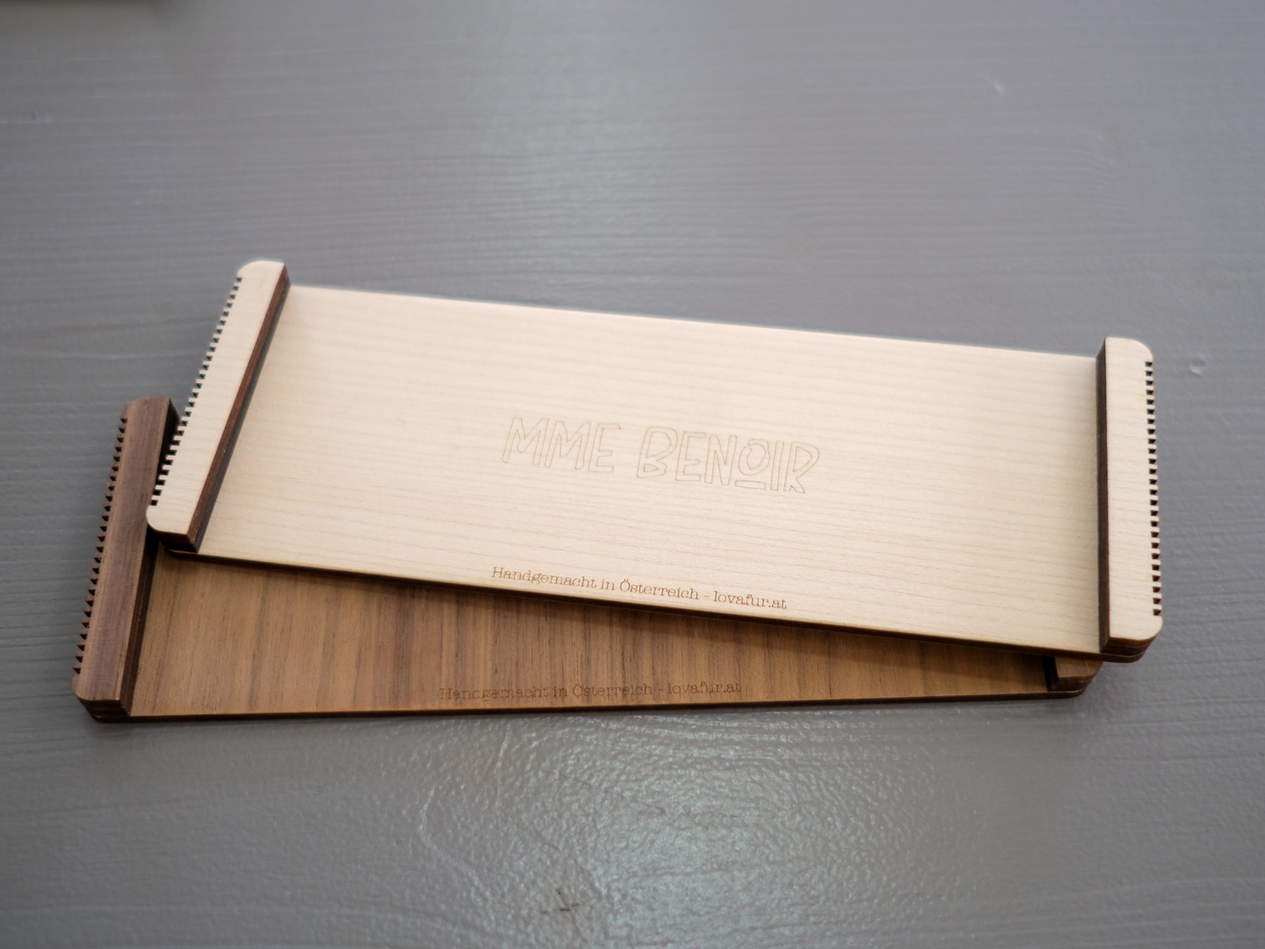 Unsere Webrahmen lassen wir in einer kleinen Manufaktur in Österreich aus Holz in zwei Farben herstellen.